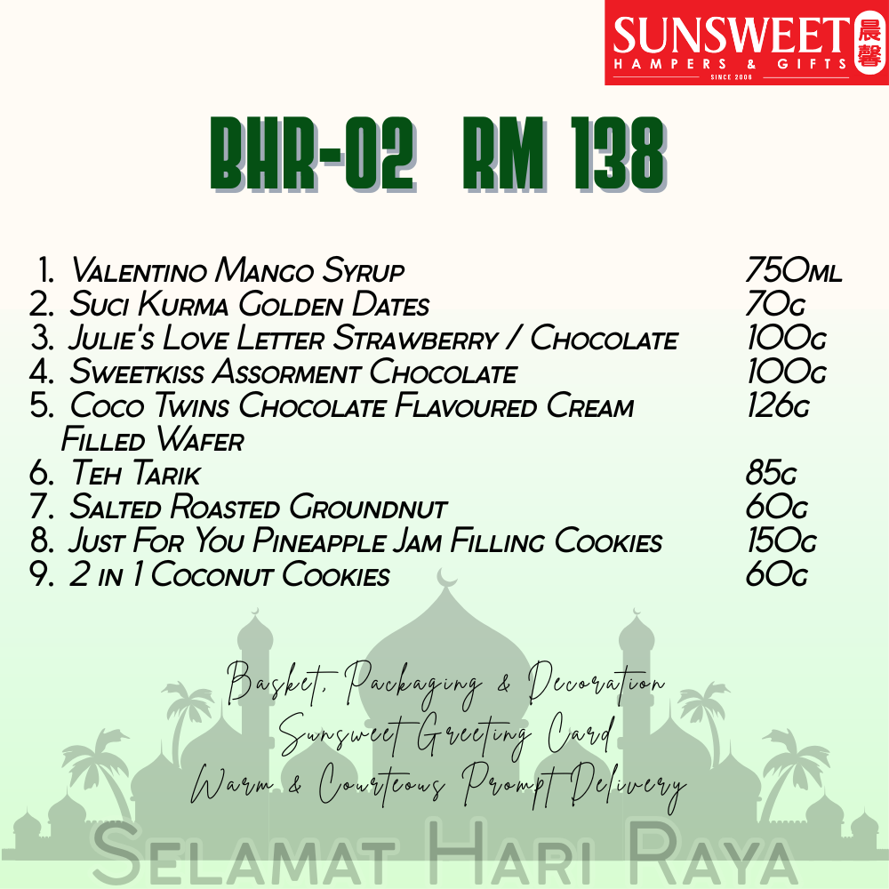 - All outstation hamper are presented in Sunsweet Hamper Box to your Receivers.