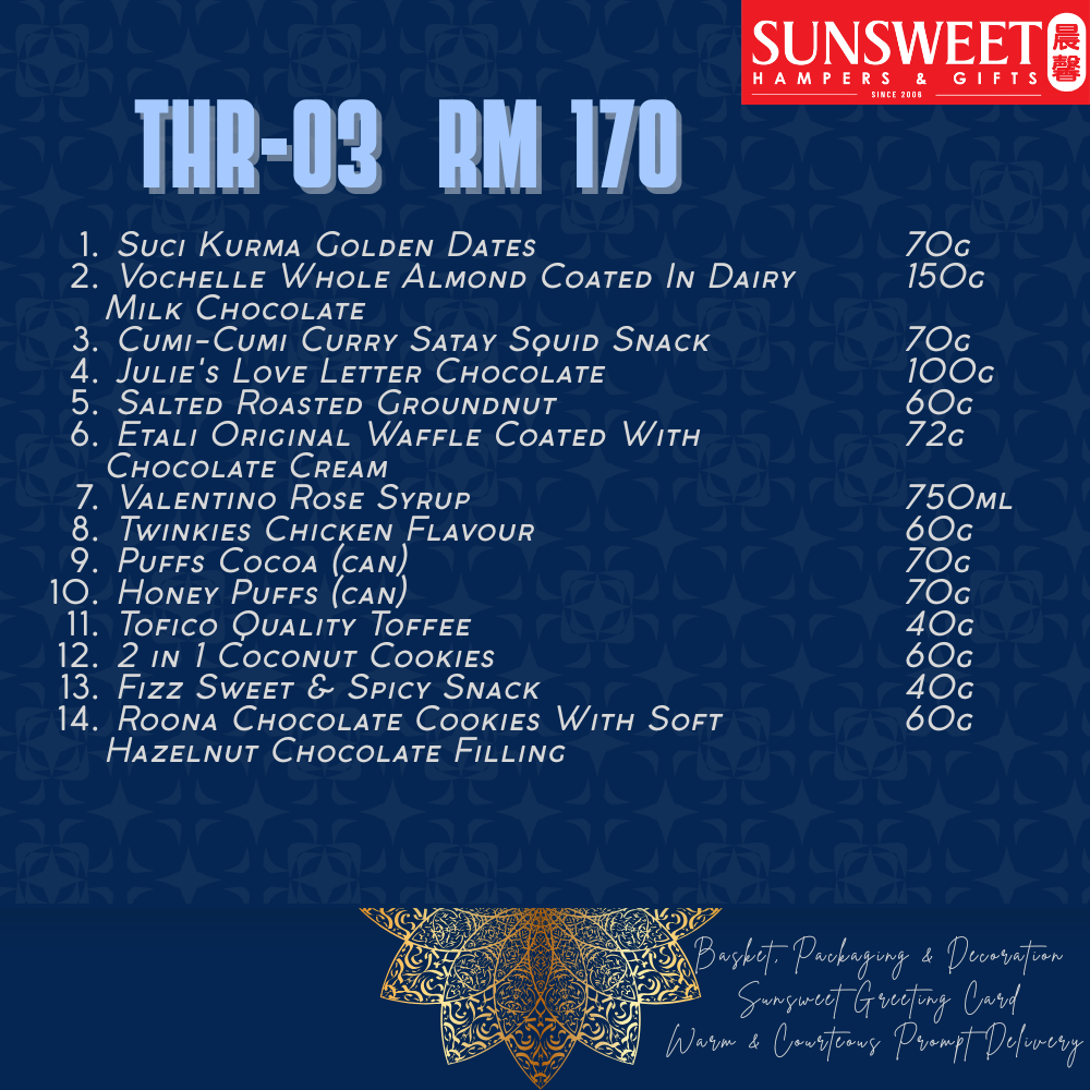 - Enjoy FREE DELIVERY within West Malaysia when you purchase a hamper valued at RM150 or more. (NOT applicable for delivery : Sabah, Sarawak, Labuan, Langkawi and other island.)-