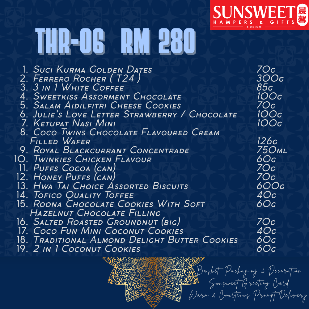 - A minimum surcharge of RM25 will apply for any hamper that needs to be RESENT or REDIRECTED.
