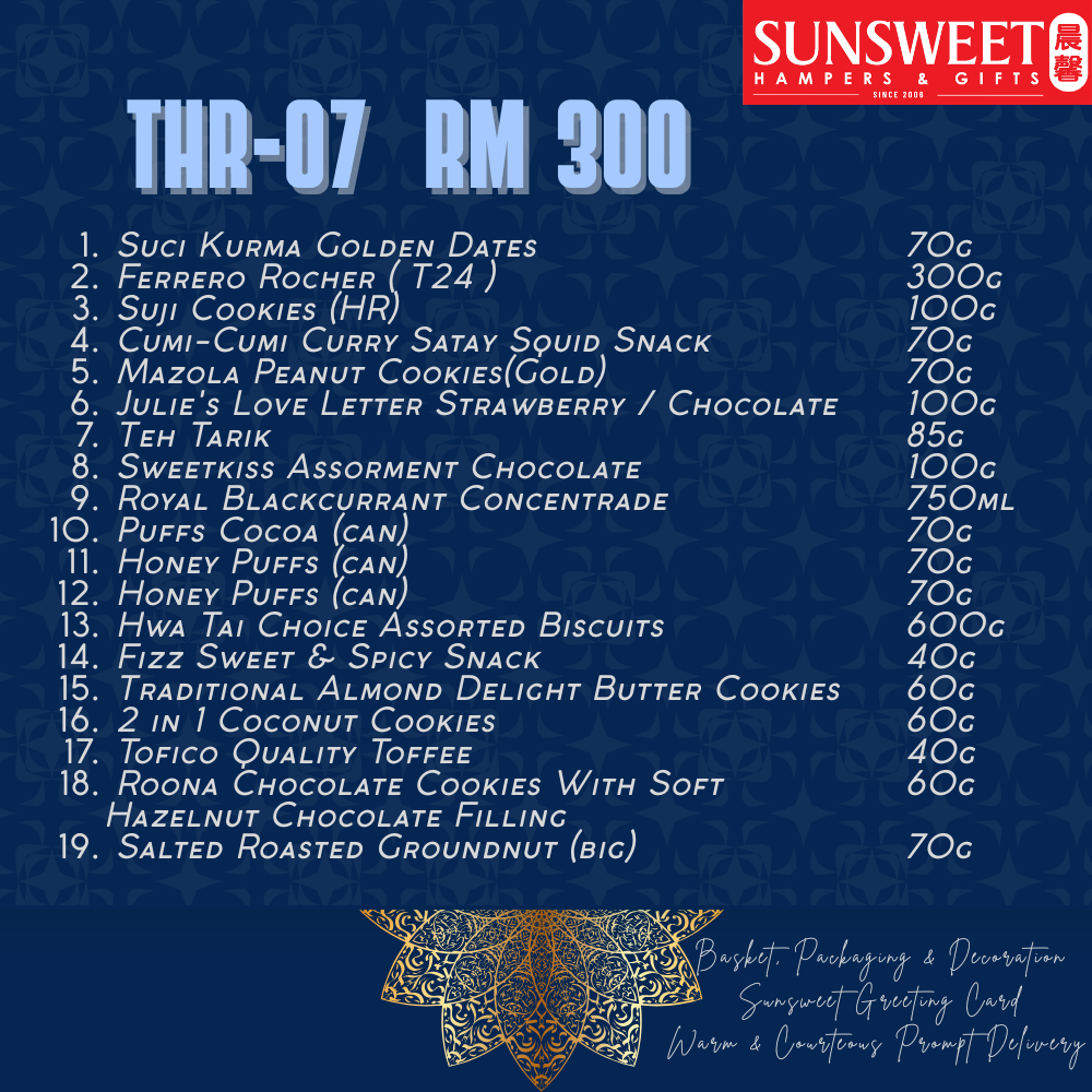 - A minimum surcharge of RM25 will apply for any hamper that needs to be RESENT or REDIRECTED.