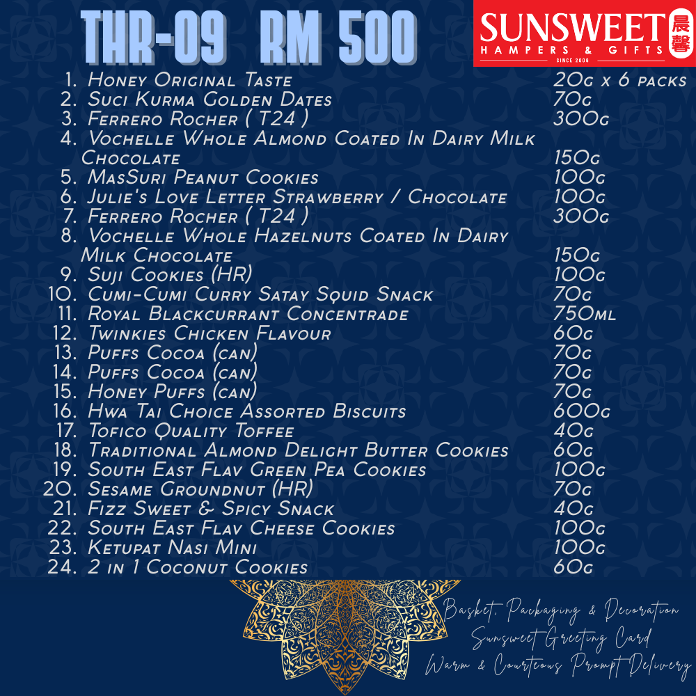- A minimum surcharge of RM25 will apply for any hamper that needs to be RESENT or REDIRECTED.
