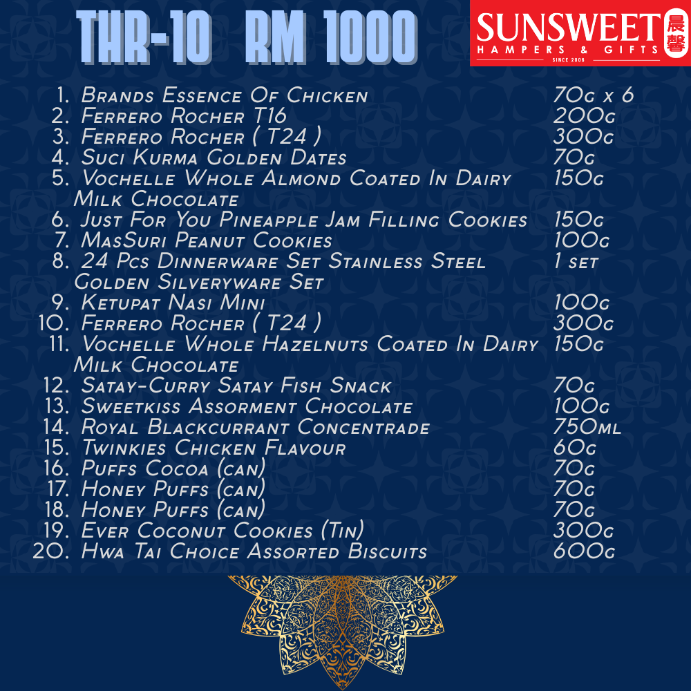 - A minimum surcharge of RM25 will apply for any hamper that needs to be RESENT or REDIRECTED.