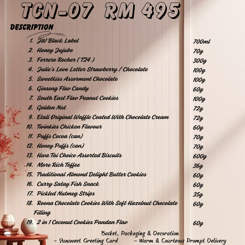 - A minimum surcharge of RM25 will apply for any hamper that needs to be RESENT or REDIRECTED.