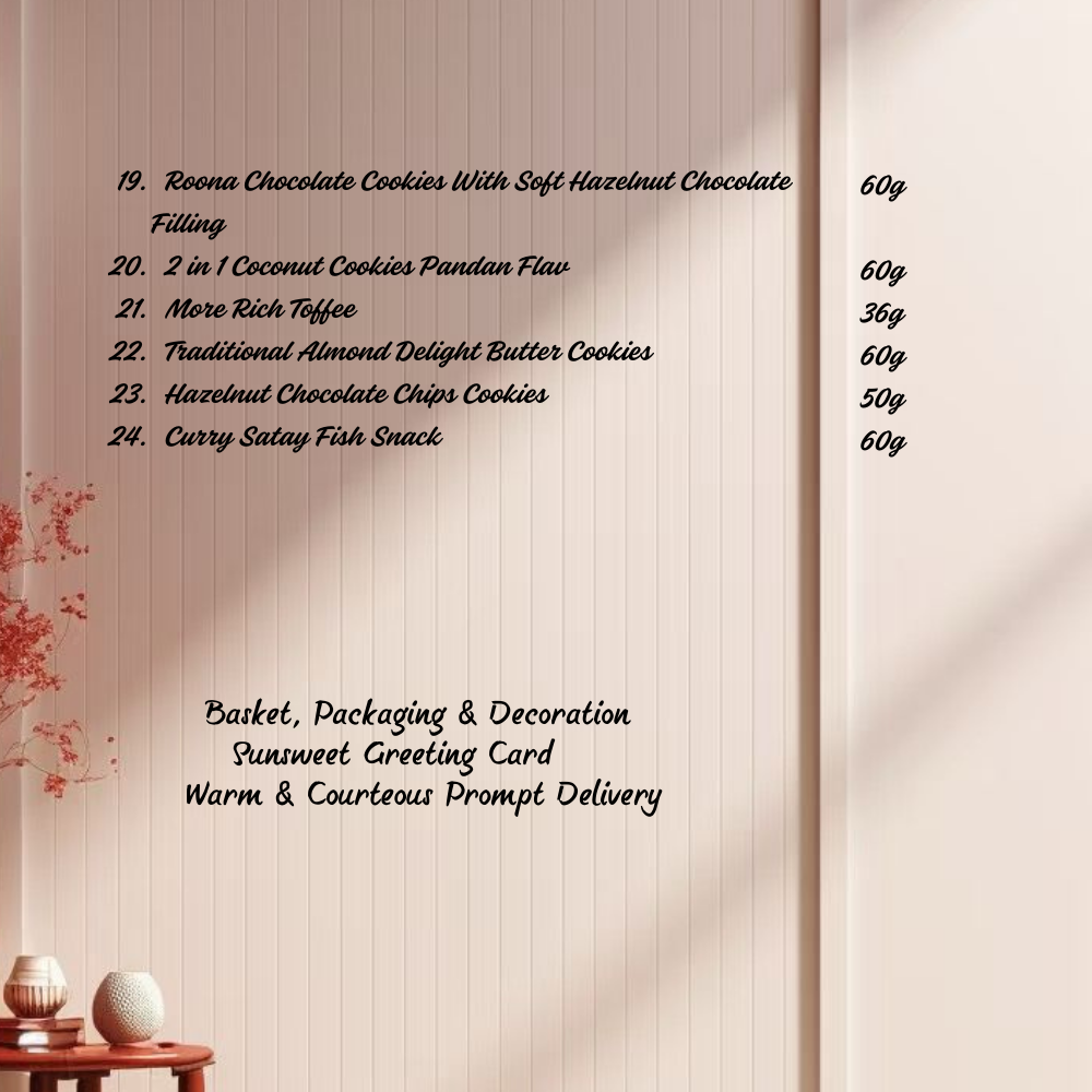 - All outstation hamper are presented in Sunsweet Hamper Box to your Receivers.