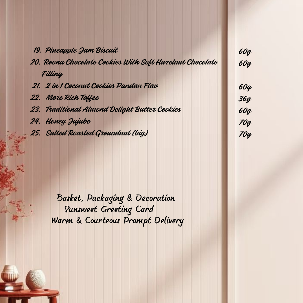- All outstation hamper are presented in Sunsweet Hamper Box to your Receivers.